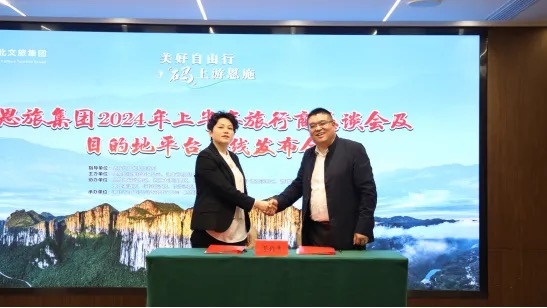 發(fā)布會上,恩旅集團營銷公司向與會領(lǐng)導和嘉賓介紹了恩施旅游目的地平臺建設(shè)背景、相關(guān)功能和操作模式等。巴楚國旅、歡硒俠國旅、想游國旅、華美達酒店等旅行商及酒店代表與恩旅集團營銷公司簽訂了平臺銷售合作協(xié)議。