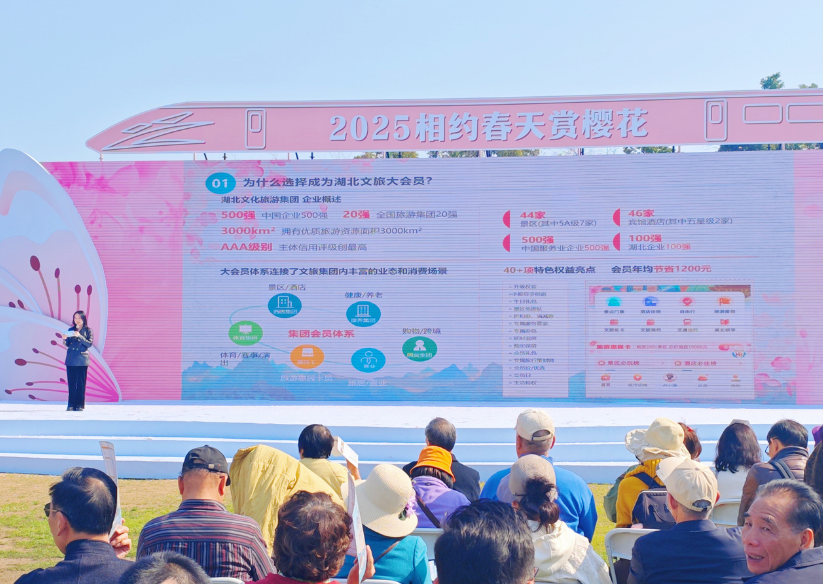 活動期間,湖北數(shù)字文旅集團亮相宣傳推介會,并專題推介了“湖北文旅大會員”平臺櫻花季限時驚喜福利。據(jù)介紹,櫻花季活動期間,平臺會員消費可享3倍積分,積分可兌換櫻花限定好禮;現(xiàn)場掃碼加入會員即可參與抽獎,豐厚獎品琳瑯滿目,洪山賓館下午茶體驗券、酒店券、門票券、度假線路券等一應(yīng)俱全。此外,會員完成每日打卡可加速提升會員等級,金卡、鉆石卡的尊享權(quán)益觸手可及。活動現(xiàn)場,觀眾互動積極踴躍,氣氛熱烈非凡,大家紛紛表達(dá)出對平臺各項福利的濃厚興趣與高漲熱情,熱度持續(xù)攀升。