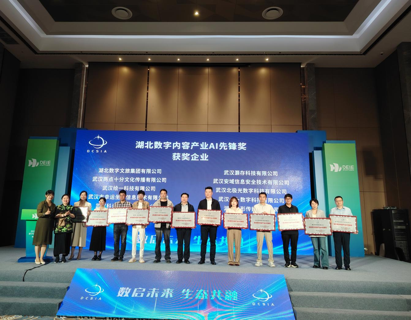 本屆數(shù)博會(huì)以“乘數(shù)而上 建成支點(diǎn)”為主題,助力湖北省數(shù)字經(jīng)濟(jì)高質(zhì)量發(fā)展?;顒?dòng)現(xiàn)場(chǎng)發(fā)布了“湖北省數(shù)字內(nèi)容企業(yè)生態(tài)圖譜”,并對(duì)行業(yè)先進(jìn)企業(yè)進(jìn)行表彰。數(shù)旅集團(tuán)榮獲“湖北數(shù)字內(nèi)容產(chǎn)業(yè)AI先鋒獎(jiǎng)”。