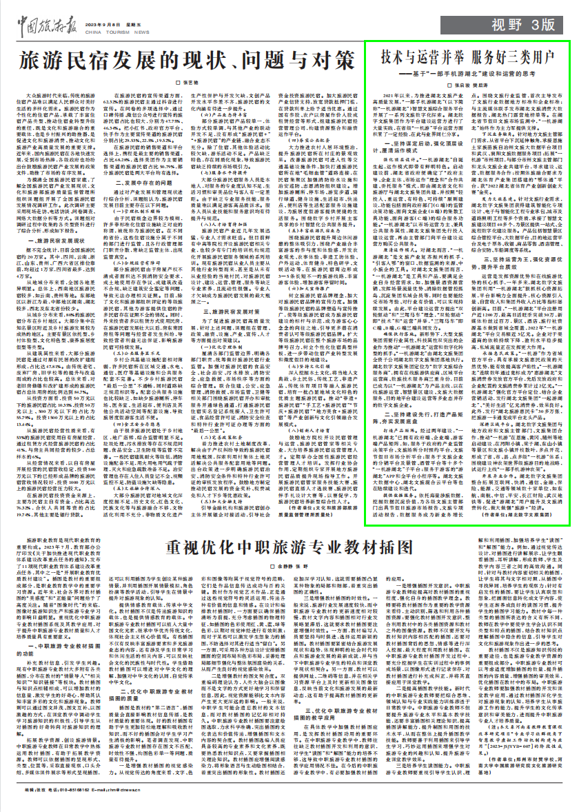 編者按:2023年9月8日,《中國旅游報》以《技術(shù)與運(yùn)營并舉 服務(wù)好三類用戶——基于“一部手機(jī)游湖北”建設(shè)和運(yùn)營的思考》為題,刊發(fā)了湖北數(shù)字文旅集團(tuán)署名文章,現(xiàn)將相關(guān)內(nèi)容轉(zhuǎn)載如下。 □ 張啟駿 樊后濤 2021年以來,為推進(jìn)湖北文旅產(chǎn)業(yè)高質(zhì)量發(fā)展,“一部手機(jī)游湖北”(以下簡稱“一機(jī)游湖北”)智慧文旅綜合服務(wù)平臺開展了一系列文旅數(shù)字化探索。湖北數(shù)字文旅集團(tuán)作為平臺建設(shè)運(yùn)營方進(jìn)行了大量實(shí)踐,在省級“一機(jī)游”平臺運(yùn)營方面積累了一定經(jīng)驗(yàn),在此與業(yè)界同仁分享。 一、堅(jiān)持謀定后動,強(qiáng)化頂層設(shè)計(jì),厘清運(yùn)作模式 強(qiáng)化頂層設(shè)計(jì)。“一機(jī)游湖北”自誕生起,運(yùn)作模式即帶有鮮明特色。啟動建設(shè)前,湖北省政府便確定了“政府主導(dǎo)、企業(yè)主體、市場運(yùn)作”理念和“合作共建、委托服務(wù)”模式,即由湖北省文化和旅游廳與湖北文旅集團(tuán)共建,并按照“輕投入、重運(yùn)營、有特色、可持續(xù)”原則建設(shè),功能包括面向政府部門(G端)的監(jiān)管決策功能、面向文旅企業(yè)(B端)的集散工具功能、面向游客(C端)的綜合服務(wù)功能。“一機(jī)游湖北”以市場運(yùn)營為主、兼具公共服務(wù)屬性,湖北文旅集團(tuán)先行投入建設(shè)運(yùn)營,再由主管部門向平臺建設(shè)運(yùn)營方購買公共服務(wù)。 厘清運(yùn)作模式。對湖北而言,“一機(jī)游湖北”是文旅產(chǎn)業(yè)復(fù)蘇振興的抓手、“引客入鄂”的窗口、數(shù)據(jù)監(jiān)測的來源、中小旅企的工具。對湖北文旅集團(tuán)而言,“一機(jī)游湖北”是工具和產(chǎn)品,要滿足企業(yè)自身經(jīng)營需求,如,加強(qiáng)景酒資源營銷、發(fā)揮場景流量優(yōu)勢、消除數(shù)據(jù)管控孤島、沉淀集團(tuán)私域會員等,同時也要能經(jīng)受市場考驗(yàn)、對行業(yè)有價值,可以實(shí)現(xiàn)持續(xù)發(fā)展。由此,平臺建設(shè)運(yùn)營方提出“雙輪驅(qū)動”和“三駕馬車”理念,“雙輪驅(qū)動”即“技術(shù)”和“運(yùn)營”并舉,“三駕馬車”即C端、B端、G端三端共同發(fā)力。 確保執(zhí)行落地。新形勢下,大型文旅集團(tuán)需要行業(yè)屬性、科技屬性雙突出的企業(yè)作為推動“一機(jī)游湖北”運(yùn)營和數(shù)字化轉(zhuǎn)型的抓手。“一機(jī)游湖北”由湖北文旅集團(tuán)全資子公司湖北數(shù)字文旅集團(tuán)落地執(zhí)行。湖北數(shù)字文旅集團(tuán)定位為“數(shù)字文旅綜合服務(wù)商”,擁有在線旅游供應(yīng)商、區(qū)域平臺運(yùn)營商、數(shù)旅技術(shù)服務(wù)商三重身份,目前已成為以“一機(jī)游湖北”為產(chǎn)品主線,以在線旅游運(yùn)營、智慧景區(qū)建設(shè)、文旅大數(shù)據(jù)服務(wù)、目的地平臺建設(shè)運(yùn)營等多業(yè)態(tài)并存的數(shù)字文旅企業(yè)。 二、堅(jiān)持建設(shè)先行,打造產(chǎn)品矩陣,夯實(shí)發(fā)展底盤 打造產(chǎn)品矩陣。經(jīng)過兩年建設(shè),“一機(jī)游湖北”已擁有政府端、企業(yè)端、游客端產(chǎn)品矩陣,如,服務(wù)于政府的產(chǎn)業(yè)監(jiān)管決策平臺、文旅場所分時預(yù)約平臺、文旅節(jié)假日市場分析平臺;服務(wù)于文旅企業(yè)的分銷平臺及景管、酒管平臺等十多個“一機(jī)游湖北”子平臺;服務(wù)于游客的“游湖北”APP和全平臺小程序等。湖北文旅大數(shù)據(jù)中心、湖北文旅混合云平臺等也在陸續(xù)建設(shè)和迭代。 提供數(shù)據(jù)服務(wù)。依托海量涉旅數(shù)據(jù),挖掘數(shù)據(jù)沉淀價值,為各級文旅主管部門出具節(jié)假日旅游市場報告、文旅專項(xiàng)活動報告,數(shù)據(jù)服務(wù)成為新業(yè)務(wù)增長點(diǎn)。圍繞文旅行業(yè)監(jiān)管,首次主導(dǎo)發(fā)布了文旅行業(yè)數(shù)據(jù)地方標(biāo)準(zhǔn)和企業(yè)標(biāo)準(zhǔn);與主流媒體聯(lián)手發(fā)布湖北文旅消費(fèi)大數(shù)據(jù)報告、湖北熱門露營地榜單等。在湖北省節(jié)假日文旅市場監(jiān)測中,“一機(jī)游湖北”始終作為主力軍提供支撐。 下沉業(yè)務(wù)觸角。針對地方文旅主管部門需求,從省平臺下沉延伸觸角,承接恩施土家族苗族自治州文旅大數(shù)據(jù)平臺項(xiàng)目和武漢、襄陽文旅數(shù)據(jù)服務(wù)項(xiàng)目;拓展“一機(jī)游”市州項(xiàng)目,與部分市州文旅主管部門和龍頭文旅企業(yè)共建平臺,尋求建設(shè)、運(yùn)營、數(shù)據(jù)服務(wù)合作;按照體旅融合要求為湖北體育產(chǎn)業(yè)集團(tuán)搭建的“鄂體通”平臺,獲“2022湖北省體育產(chǎn)業(yè)創(chuàng)新創(chuàng)業(yè)大賽”金獎。 發(fā)力文旅基建。針對文旅行業(yè)需求,湖北數(shù)字文旅集團(tuán)獲得建筑智能化專項(xiàng)設(shè)計(jì)、電子與智能化工程專業(yè)承包、城市及道路照明工程等多個資質(zhì),承接了智慧文旅建設(shè)項(xiàng)目40多個,為景區(qū)提供一站式、全流程數(shù)字化建設(shè)服務(wù)。產(chǎn)品包括智慧景區(qū)綜合管控平臺、大數(shù)據(jù)平臺、目的地運(yùn)營平臺及電子票務(wù)