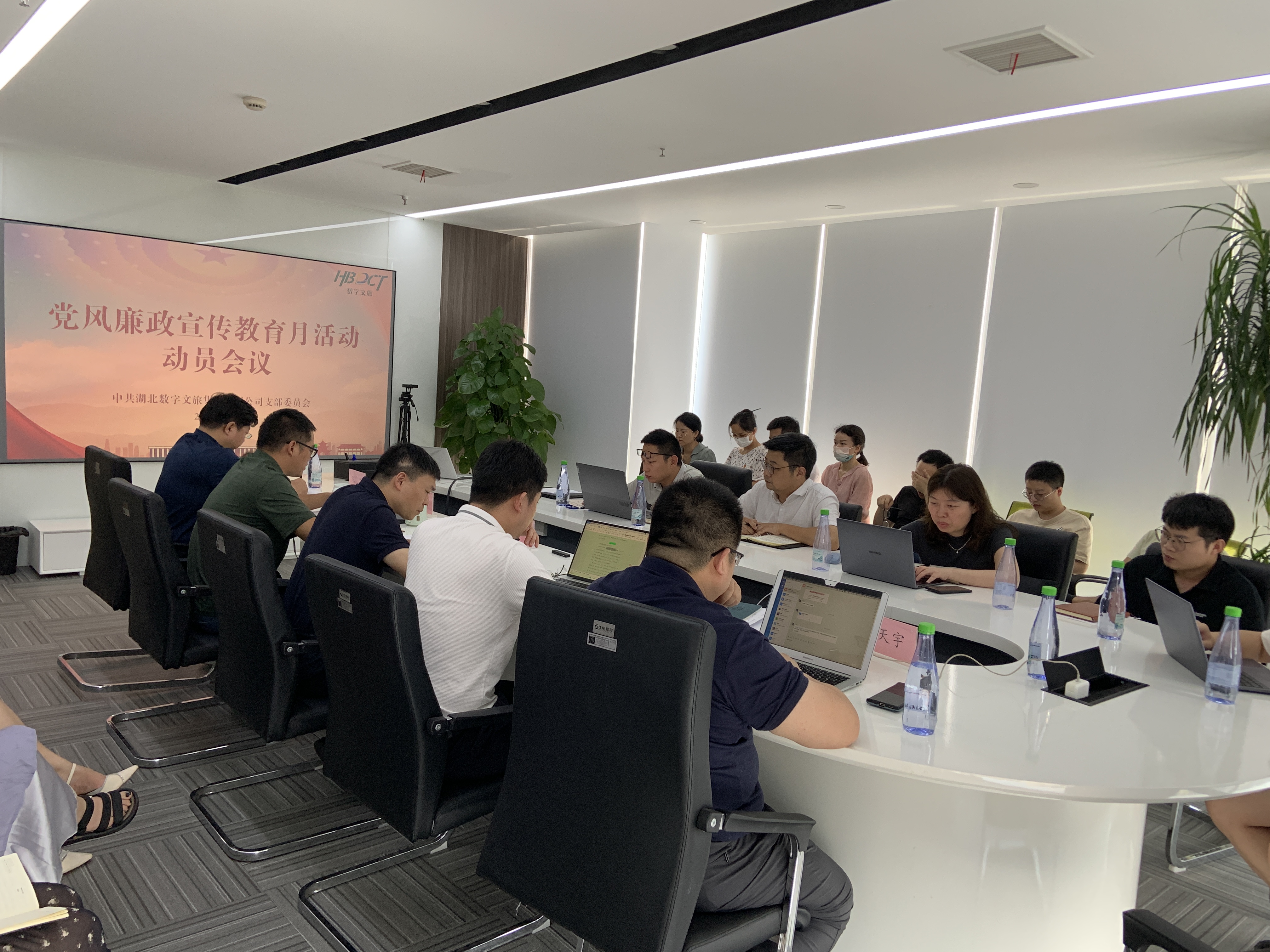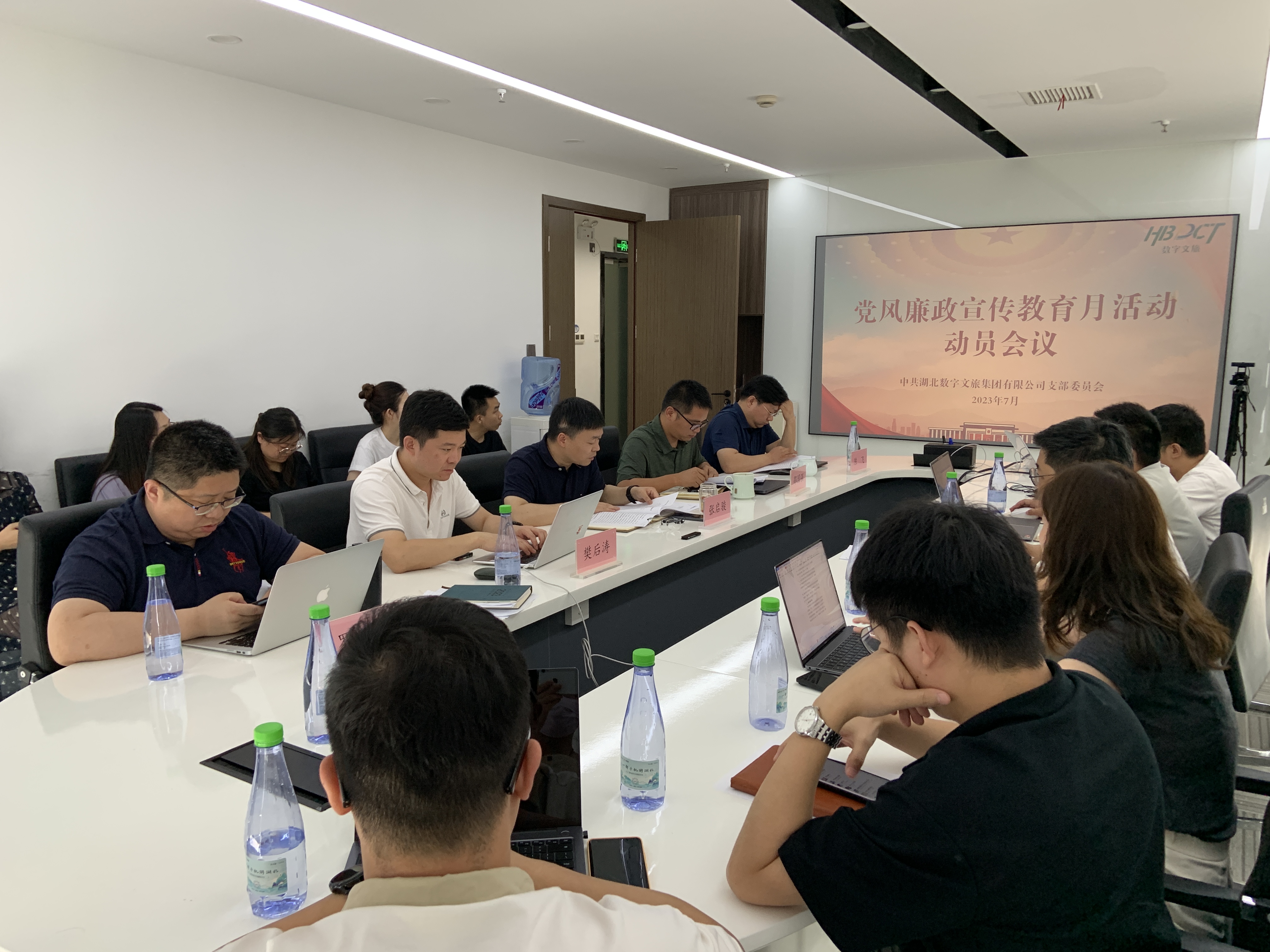 會(huì)議傳達(dá)湖北文旅集團(tuán)宣教月活動(dòng)方案,支部紀(jì)檢委員邵國強(qiáng)安排部署開展宣教月活動(dòng)的重點(diǎn)工作并宣讀《家庭助廉倡議書》,支部書記張啟駿對(duì)宣教月活動(dòng)動(dòng)員發(fā)言。