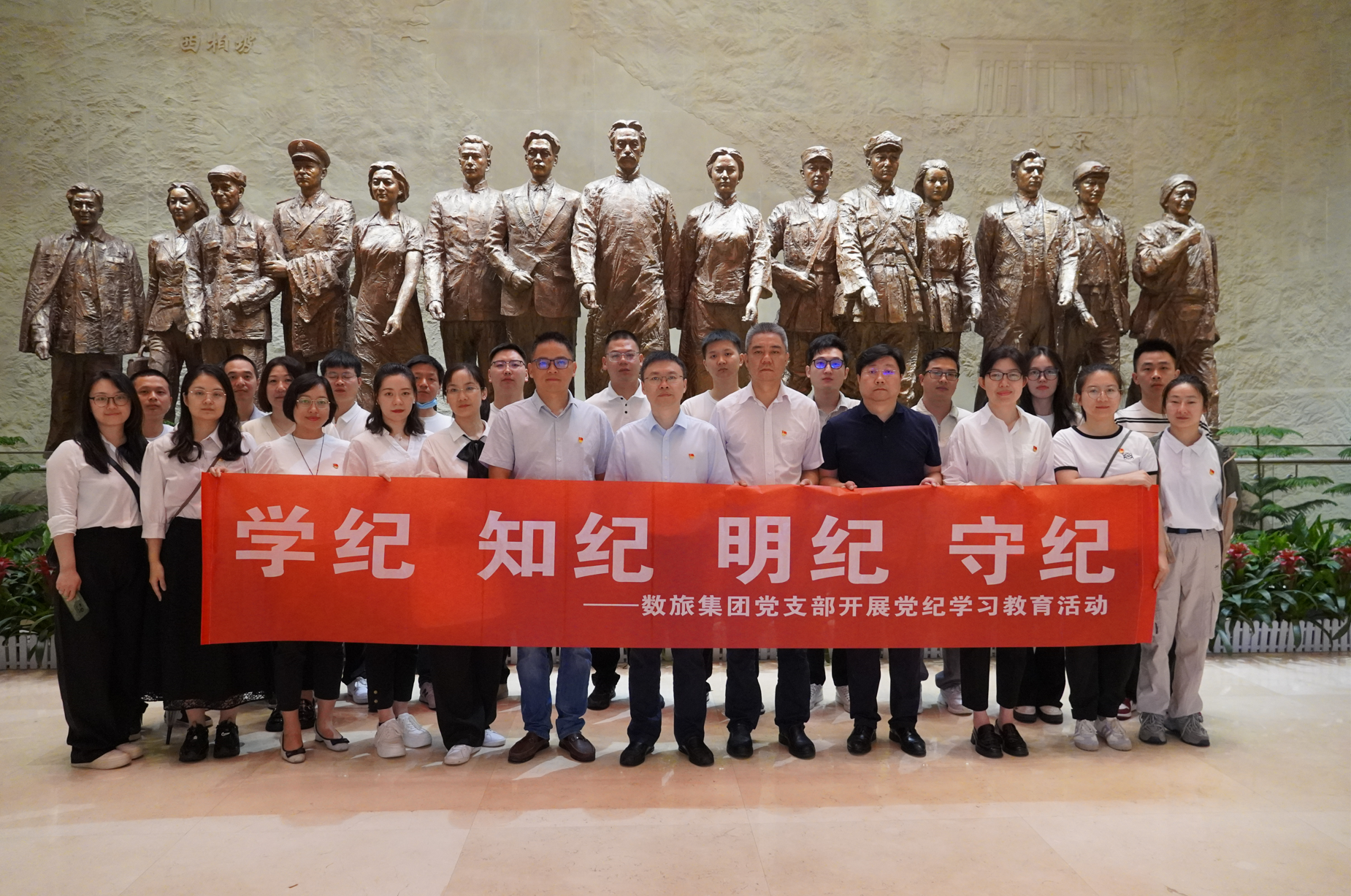 在中國共產(chǎn)黨建黨103周年來臨之際,為推進(jìn)黨紀(jì)學(xué)習(xí)教育進(jìn)一步走深走實,6月27日,數(shù)旅集團(tuán)赴中國共產(chǎn)黨紀(jì)律建設(shè)歷史陳列館開展“學(xué)紀(jì) 知紀(jì) 明紀(jì) 守紀(jì)”黨紀(jì)學(xué)習(xí)教育活動,公司領(lǐng)導(dǎo)班子成員、黨員、入黨積極分子共30余人參加。