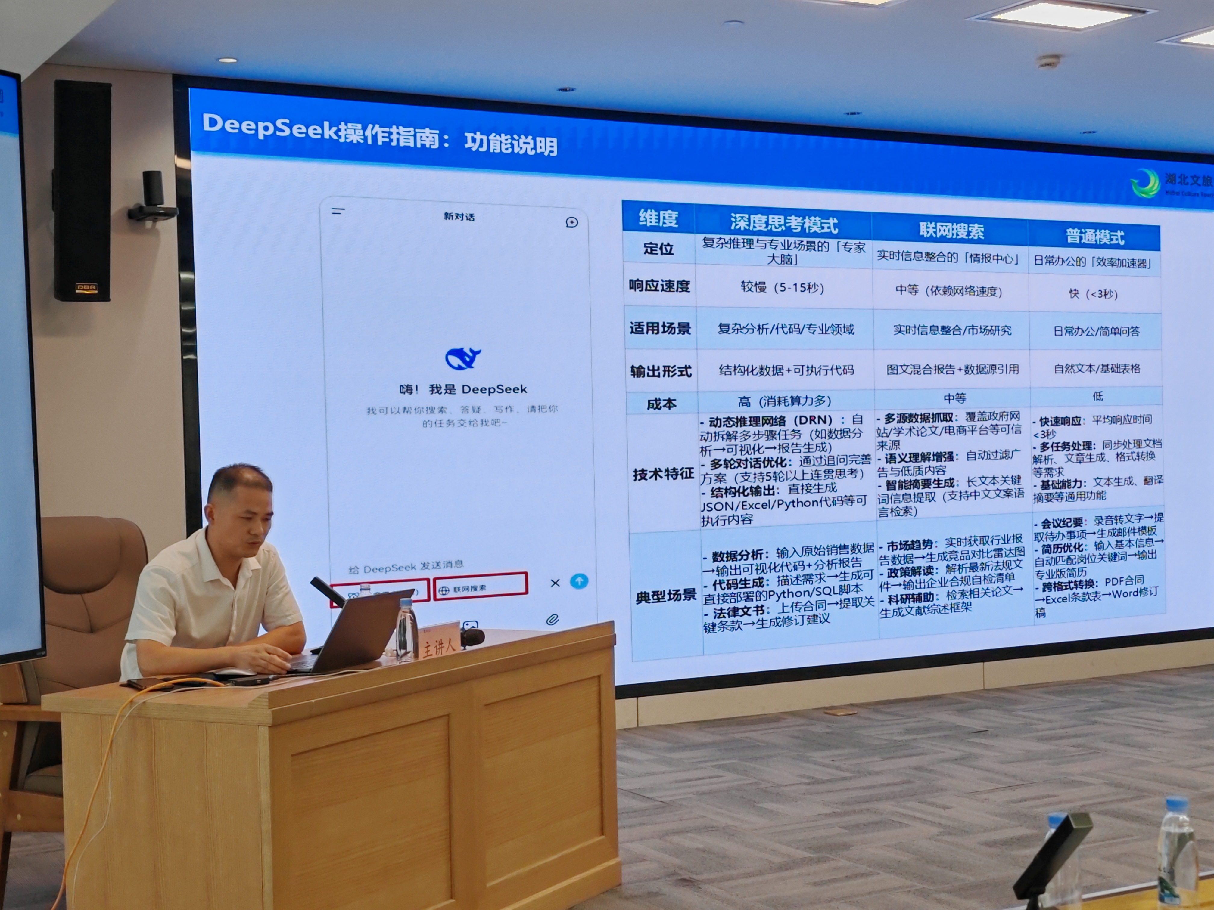 培訓(xùn)最后,公司集團(tuán)業(yè)務(wù)事業(yè)部吳鵬以《解鎖AI+DeepSeek在辦公場景的實踐與應(yīng)用》為主題展開分享。結(jié)合辦公實際需求,詳細(xì)介紹AI+DeepSeek技術(shù)在文檔處理、數(shù)據(jù)分析、PPT制作等辦公場景中的具體應(yīng)用場景與實踐案例,演示該技術(shù)如何提升辦公效率、降低人工成本、優(yōu)化工作質(zhì)量。