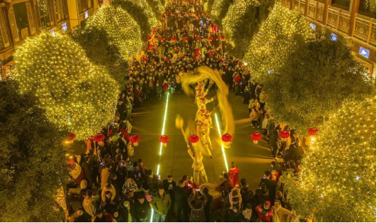湖北端出新春文旅大餐迎龍年。春節(jié)臨近,湖北各地準備了豐富的新春文旅主題活動。全省文旅部門以“歡歡喜喜過大年——迎龍年、過大節(jié),龘龘鬧荊楚”為主題,陸續(xù)舉辦9大系列、21個類別近3000項全省性文化旅游活動。初步統(tǒng)計,自1月下旬至3月初,全省共有各類文藝演出570余場,惠民活動300余場,展覽展示100余場,大小集市、廟會、燈會等800余場。一場場新春市集、廟會、燈會、文藝演出、非遺展覽等各種形式的活動,秀出龍年新年紅火盛景。