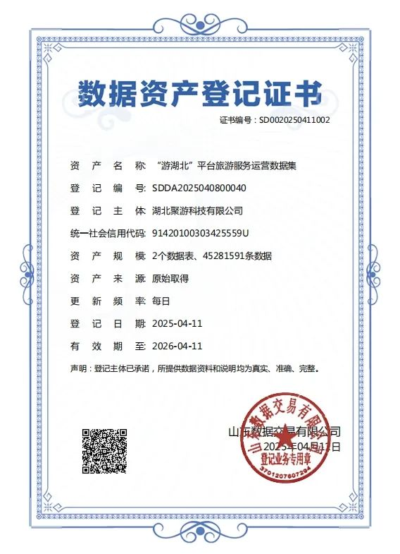 數(shù)旅集團(tuán)實(shí)現(xiàn)文旅數(shù)據(jù)資源向資產(chǎn)入表實(shí)質(zhì)性突破!近日,湖北數(shù)字文旅集團(tuán)旗下聚游科技公司研發(fā)的“游湖北平臺(tái)旅游服務(wù)運(yùn)營(yíng)數(shù)據(jù)集”成功取得數(shù)據(jù)資產(chǎn)登記認(rèn)證。該數(shù)據(jù)集源自聚游科技公司承建的湖北省重點(diǎn)文旅數(shù)字化項(xiàng)目“一部手機(jī)游湖北”平臺(tái)。依托平臺(tái)運(yùn)營(yíng)積累的海量數(shù)據(jù),涵蓋游客行為分析、景區(qū)實(shí)時(shí)流量監(jiān)測(cè)、消費(fèi)偏好畫像、文旅服務(wù)評(píng)價(jià)等核心維度。通過標(biāo)準(zhǔn)化治理、脫敏處理及合規(guī)確權(quán),實(shí)現(xiàn)了數(shù)據(jù)資源向資產(chǎn)的轉(zhuǎn)型,為數(shù)據(jù)資產(chǎn)入表奠定了堅(jiān)實(shí)基礎(chǔ)。