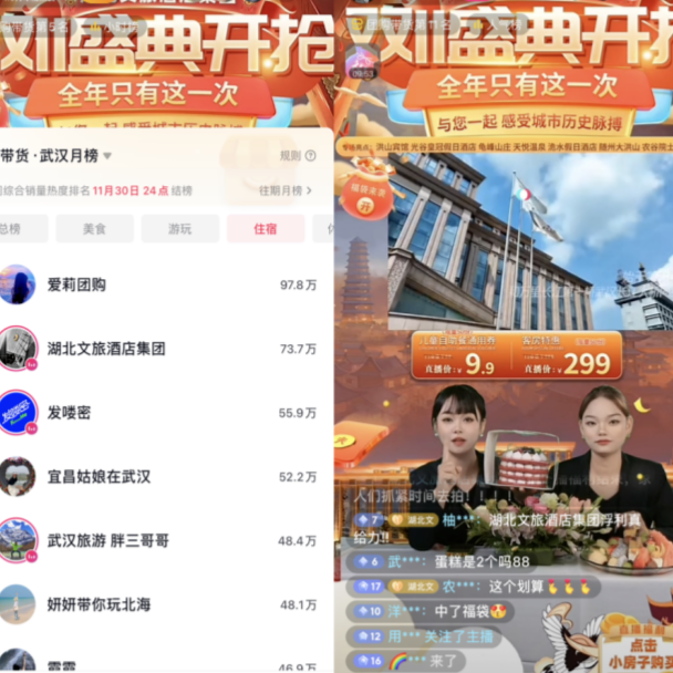 智旅動態(tài)周報 第157期|數(shù)旅集團 “雙十一”直播 躋身武漢團購帶貨月榜第2名